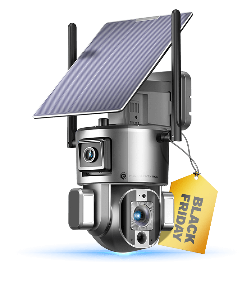 The top lens provide uninterrupted monitoring of the main area, while the bottom lens auto tracks movement in real time.